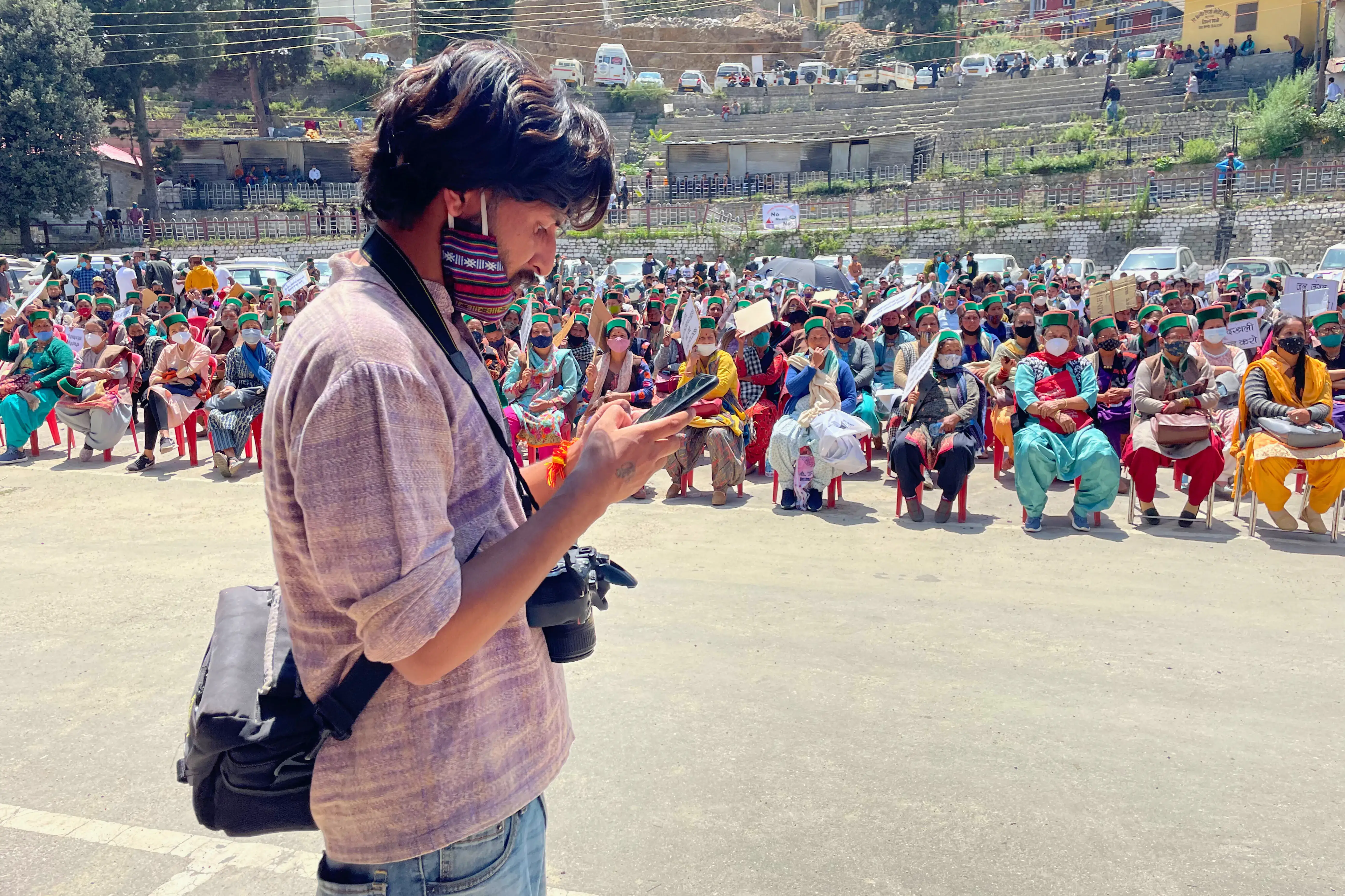 I came back for an open call to protect nature, where people from across Kinnaur gathered with one cry: “No Means No, no more dirty development.” It was a strong stand to protect the mountains. This was right after COVID, and everything felt different. People were asking questions, raising their voices, and I stood among them, trying to understand what I could do. That day was special.